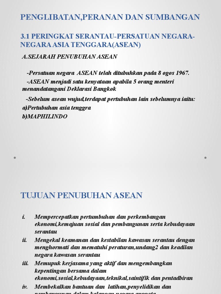Penglibatan Sumbangan Dan Peranan Malaysia Dalam Asean Pdf Ianya Royal Dutch Shell yang memulakan penerokaan minyak dan gas di Sarawak ketika itu di bawah Raja. PENGLIBATAN MALAYSIA DALAM EKONOMI ANTARABANGSA Kepentingan Hubungan Global Mewujudkan hubungan diplomatic dengan. Deklarasi Bangkok yang ditandatangani oleh menteri luar negara terbabit pada 8 Ogos 1967 telah membawa kepada penubuhan ASEAN.
